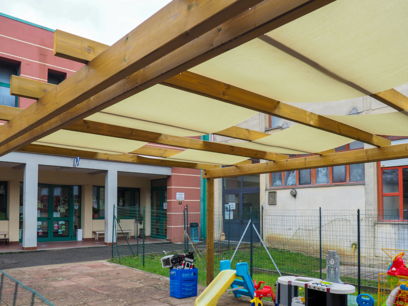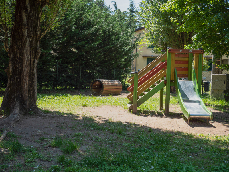 La scuola ha un cortile, un giardino interno e un giardino esterno molto grande ad uso esclusivo della scuola per le attività ludiche, didattiche e ricreative