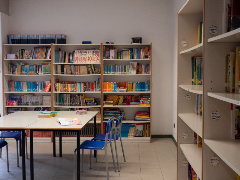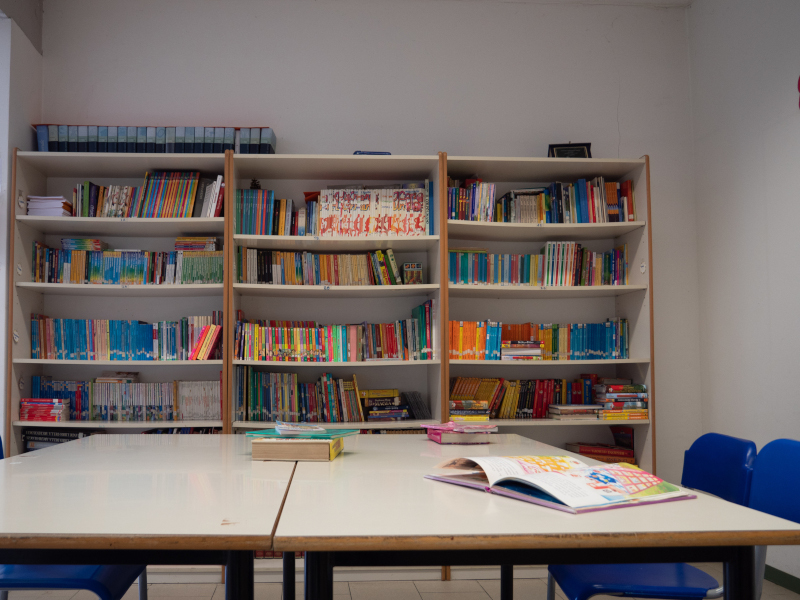 [ ] 1 Biblioteca: uno spazio dedicato alla lettura attrezzato con angolo morbido e numerosi volumi aggiornati e di generi letterari diversi.