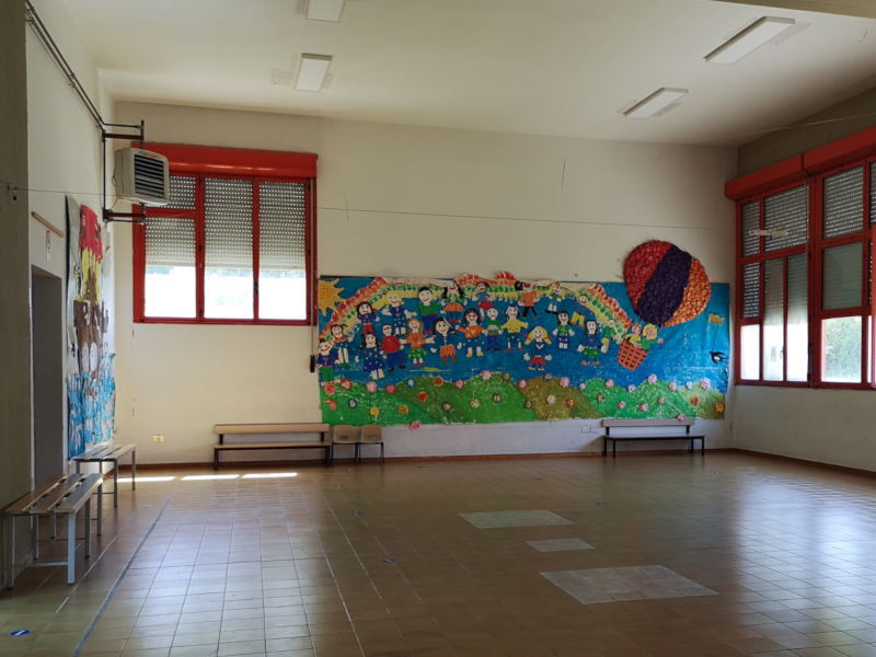 [ ] 1 “Palestra”: Una stanza luminosa a vetri, utilizzata principalmente per le attività motorie, oltre che per le attività progettuali che investono tutte le classi.